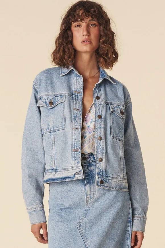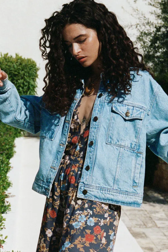 The Eve Denim Jacket arrives in two fabrications and two different colourways. This Jacket exudes effortless ‘cool girl’ in our Sunwashed Blue colourway. A boxy fit in a rigid denim our Jacket is cropped and features side pockets and front pockets with flaps. All brass buttons are Spell branded and completely functional. We see this one paired with our Eve Denim Jeans or the Eve Denim skirt and heels for a ‘relaxed chic’ look. A timeless piece, our Jacket is designed to pair back with all styles from our Flora collection and throughout the seasons for years to come.