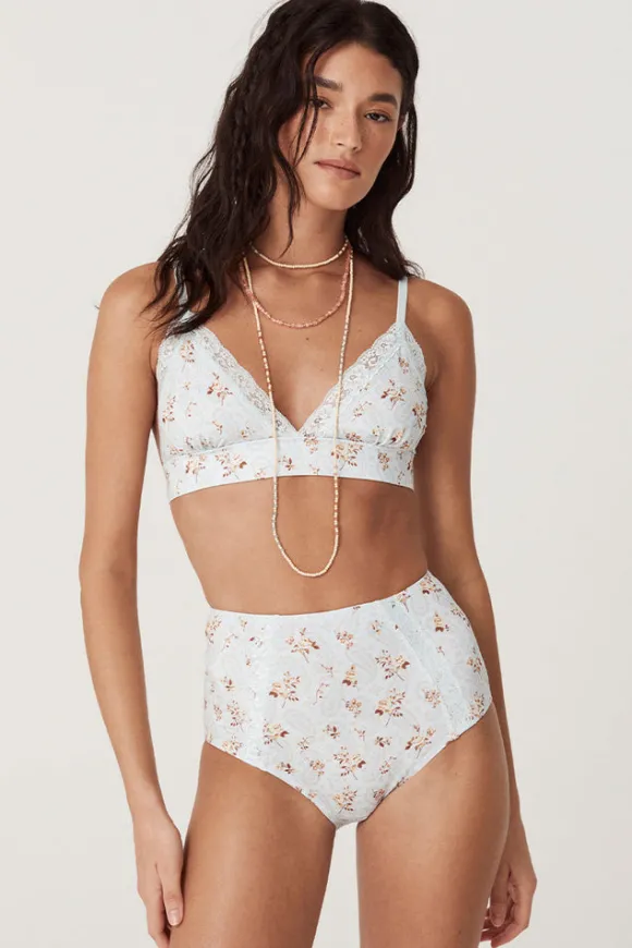 Our Fleur Lace High Waisted Brief in Teapot Blue is a flattering ‘fit to perfection’ style. Featuring a high waisted cut with lace details in dreamy blue and soft sepia tones, this brief offers the wearer a sense of confidence and sensuality.
