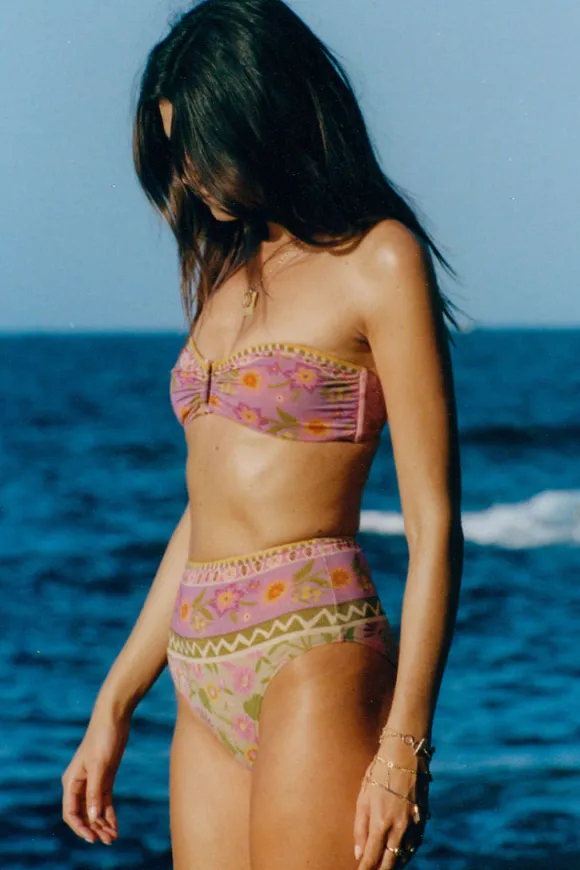 The Goldie Shimmer High Waist Pant in Desert Rose is the ultimate fusion of vintage charm and modern allure. Designed with a striking placement print, this high-waisted swim pant flatters the form while offering a secure and comfortable fit. Crafted from shimmering, sustainable fabric, it’s perfect for poolside lounging or ocean dips. Pair with the matching Goldie Shimmer Bandeau for an effortlessly chic swim look.