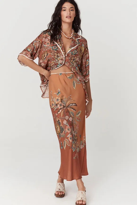 Reimagining a beloved shape, the Mojave Lily Bias Skirt in Amber introduces our favourite bias cut in an artful Batik-inspired print for the first time. Expertly crafted from our silk like TENCELâ„¢, this skirt brings a touch of shimmer and a soft, graceful drape, effortlessly complementing every curve. Amber and hazelnut colour blocks are skillfully arranged, with the Mojave Lily signature print forming a striking border between tones. Crafted for both the print lover and our minimalist muse, this bias-cut silhouette is the ultimate choice for adding timeless sophistication to any look. Pair with a boxy shirt for some everyday glamour or with our matching cami for a shimmering sunset soirée.Â