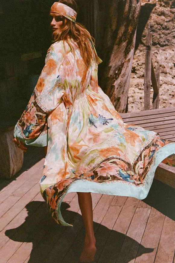 Our Painter’s Garden Gown in Seafoam evokes the romance of 1930’s vintage robes with silky, liquid like fabric, exquisite jacquard detailing and graceful watercolour florals and striking border details. With a silhouette that flows with every movement, this gown transforms languid mornings into unforgettable nights. Elevate the look with a slim heel and understated gold or pearl accessories for a glamorous, yet understated ensemble. Pair with boots and a lightweight cardigan for a more relaxed feel.