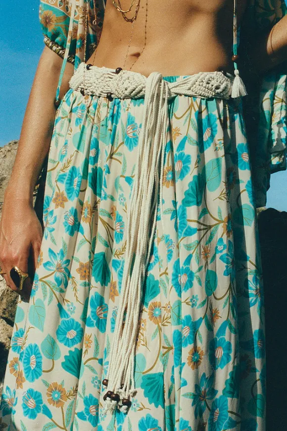 The Sister Honey Macrame Belt in Rope is a dreamy nod to bohemian nostalgia. Hand-plaited from organic cotton, this artisanal piece is adorned with wooden bead detailing for an effortless vintage feel. Long, plaited ties with beaded ends add movement and charm, making it the perfect statement accessory to cinch the waist or drape low on the hips. Pair it with a Spell gown for a free-spirited finish, or style it over denim for an elevated everyday look.