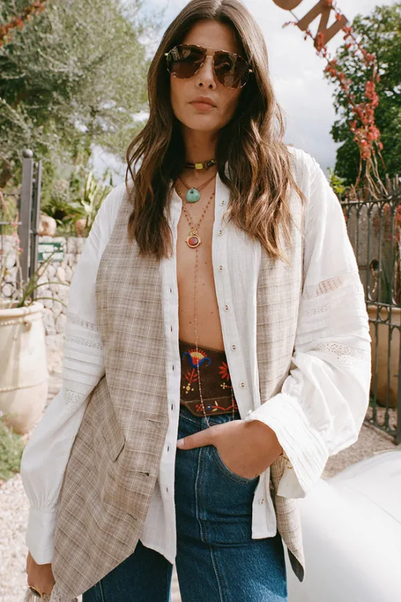 The Arizona Vest in Check is the perfect harmony of tailored chic and relaxed charm. Designed in a sustainable blend of Organic Cotton and Hemp, this single-breasted vest features a deep front neckline and low armholes for a flattering, modern silhouette. Front flap pockets and an adjustable back waist add both function and style, while placement customised embroidery lends a unique, artisanal touch.