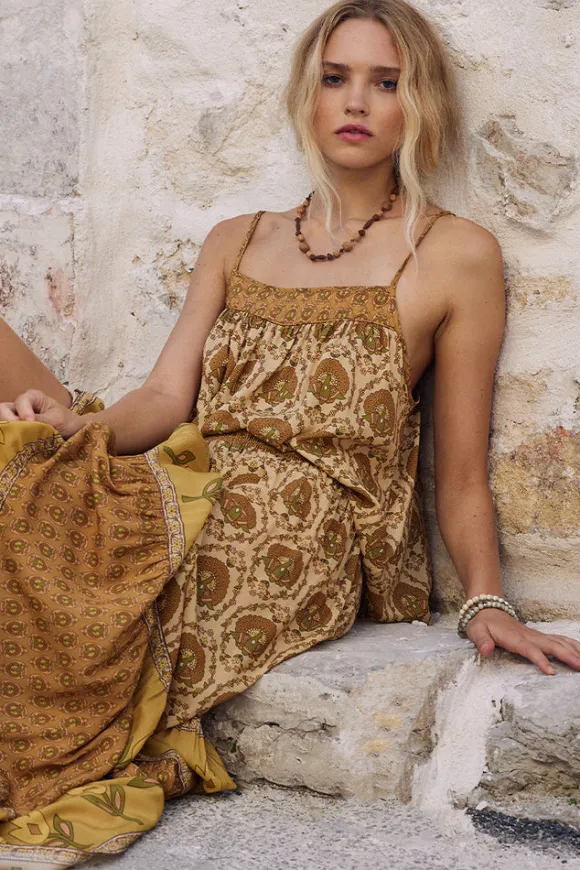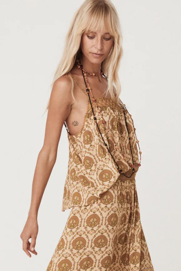 The Château Cami in Champagne is the perfect transeasonal styling piece this season. Our Cami is a familiar and well loved silhouette, crafted from a new lightweight fabrication that’s unlined without being sheer and fitting true to size. Our cami features delicate adjustable shoulder straps, a stunning quilted front yoke with a border print detail and intentionally floaty body. Our cami can be layered with a turtleneck and paired with the matching Château Maxi Skirt and boots for the cooler months or worn as is with denim cut offs and sandals on those warmer days. With endless styling versatility our cami is perfect for any occasion and a go to styling piece for years to come.