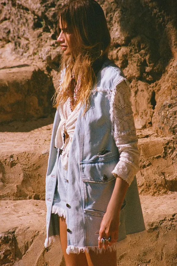 Our Daydreamer Denim Vest in Sky is for the heartbreakers and adventure seekers. Intentional distressing and frayed edges add an undone feel, while the boxy silhouette and patch pockets offer functionality. Button up and pair with the Daydreamer Skirt and boots for the perfect denim on denim ensemble or layer over a blouse and skirt with loafers for a cute street style moment.