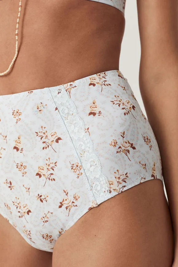 Our Fleur Lace High Waisted Brief in Teapot Blue is a flattering ‘fit to perfection’ style. Featuring a high waisted cut with lace details in dreamy blue and soft sepia tones, this brief offers the wearer a sense of confidence and sensuality.