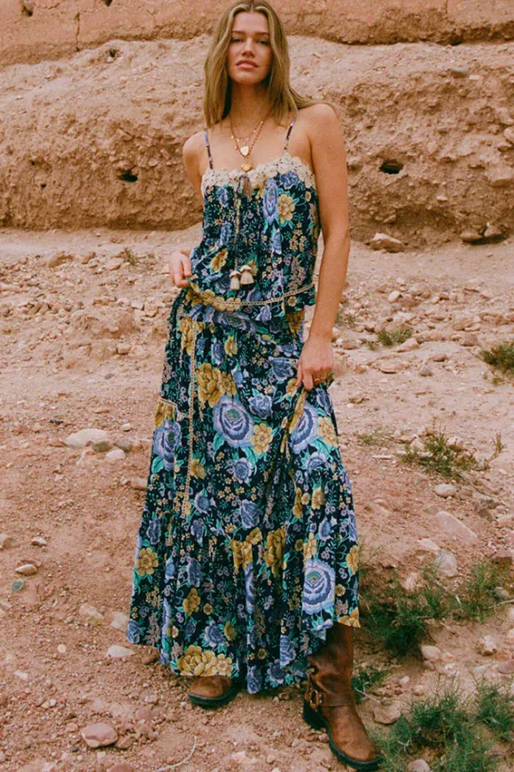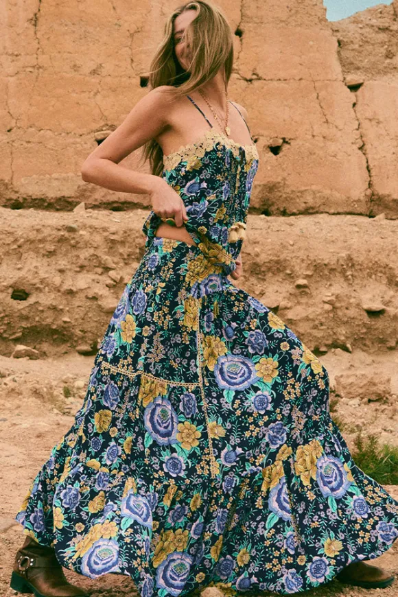 The Full Bloom Maxi Skirt in Periwinkle is a nostalgic nod to vintage femininity. Designed in a flowing silhouette, this beauty features an allover floral print, a front yoke panel, and a shirred elastic waist for the perfect fit. Delicate faggoting lace trims and a soft hem frill add a touch of romance, making this skirt effortlessly dreamy. Pair it with the Full Bloom Cami for a matching set or style it with a vintage tee for a carefree, bohemian vibe.