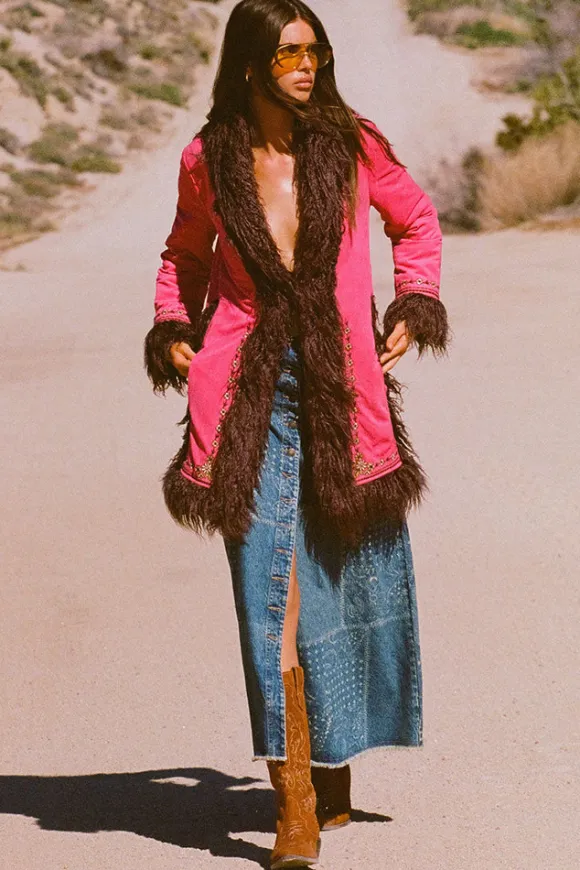 The Joplin Jacket in Hypnotic Heart embodies the essence of Spell ~ plucked from a 70’s dreamscape, crafted for the rock and roll muse. Our Joplin Jacket features signature embroidery throughout and the softest faux fur interior, dramatically protruding at every edge. Incredibly luxe with vintage feel, our Jacket is for the untamed and rebel hearts. A staple piece that exudes confidence and elevates your festival fit with ease, we know this style is sure to become an instant classic!