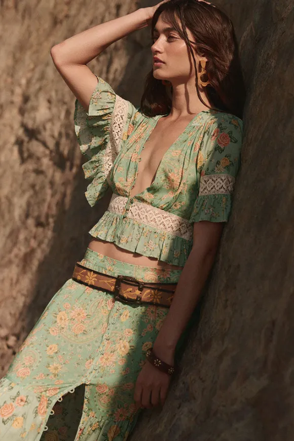 The Melody Maxi Skirt in Arizona is charming and elegant featuring a tiered skirt that cascades to the floor, inserted lace details, a button down front and fixed front waist adding a touch of sophisticated glamour. The tiered design adds volume and movement, making it ideal for twirling under festival lights. Unbutton the skirt to show a little leg and pair with a white cami and slides for luxe vacay styling. Our skirt is endlessly versatile, whether you’re exploring a bustling market or enjoying a sunset soiree, this skirt transforms from day to night with ease and ensures you move with an air of insouciant grace.