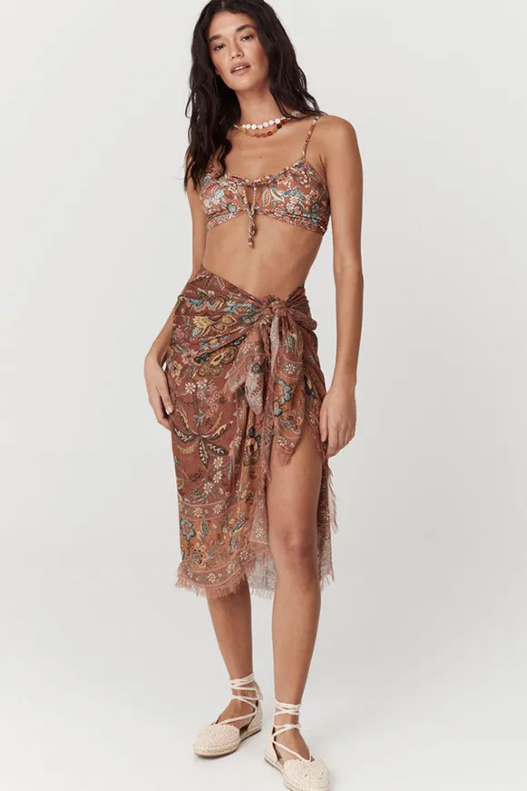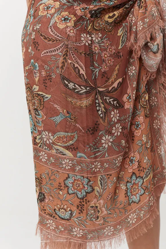 Our Mojave Lily Travel Scarf in Amber is the perfect companion for sun-soaked escapes and spontaneous adventures. Incredibly soft and endlessly versatile, our newest travel scarf can be styled as a top or skirt, or paired with your favourite swim from our Mojave Lily story. Featuring our hand drawn Mojave Lily print with a striking border detail at the edge, this piece is your go to styling piece for effortless vacay glamour.