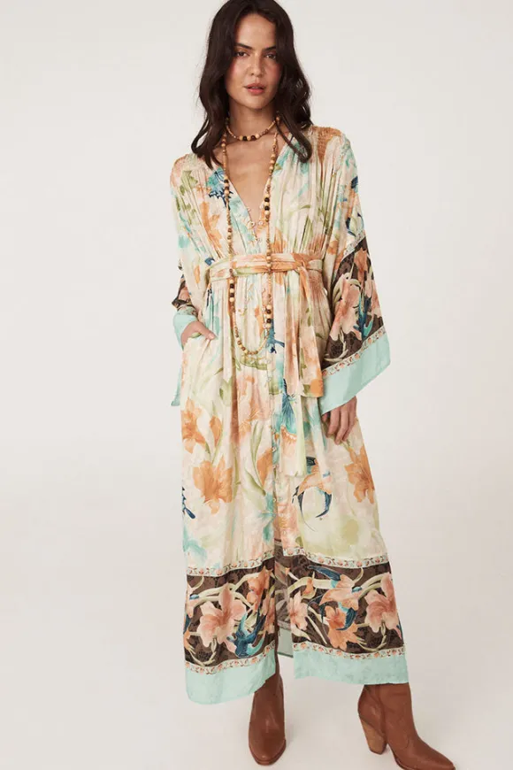 Our Painter’s Garden Gown in Seafoam evokes the romance of 1930’s vintage robes with silky, liquid like fabric, exquisite jacquard detailing and graceful watercolour florals and striking border details. With a silhouette that flows with every movement, this gown transforms languid mornings into unforgettable nights. Elevate the look with a slim heel and understated gold or pearl accessories for a glamorous, yet understated ensemble. Pair with boots and a lightweight cardigan for a more relaxed feel.