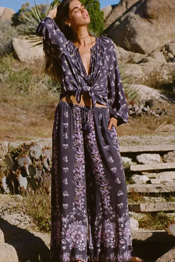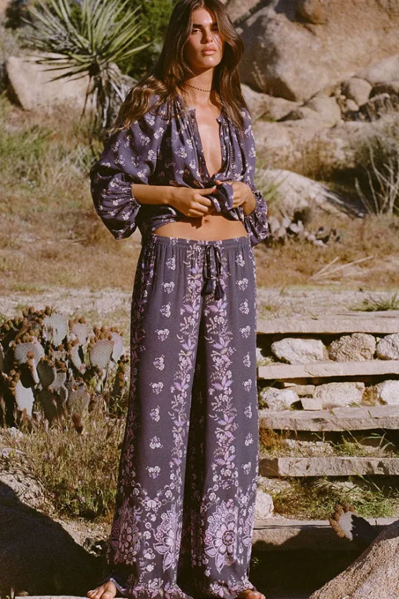The Rebel Spirit Wide Leg Pant in Hyacinth offers a striking blend of comfort and style. With a hand-drawn floral print inspired by desert wildflowers and a striking contrast border detail at the hem our pants are designed to make a statement. The wide leg silhouette is flattering and breezy while the elasticated waist ensures a comfortable fit, making these pants perfect for everything from a day at the office to a weekend getaway. Pair them with the Rebel Spirit Blouse in Hyacinth for a head-to-toe look that exudes effortless elegance or a simple white cami and strappy sandals for an off duty look.