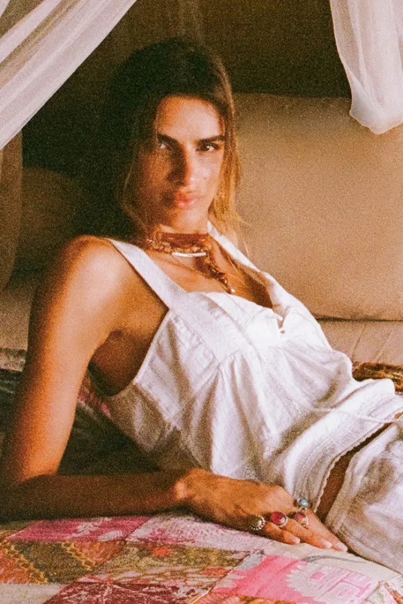 Elevate your wardrobe with the ethereal Serendipity Lace Cami in Jasmine. Crafted from luxurious organic cotton, this delicate piece is adorned with romantic lace trims and finished with cotton rope ties and playful tassels. The soft, feminine silhouette exudes understated elegance. Style it with high-waisted trousers and loafers for a sophisticated day look, or pair with the matching Serendipity Lace Skirt for a graceful evening ensemble. Whether layered or worn solo, this cami offers endless versatility with a touch of ethereal charm.