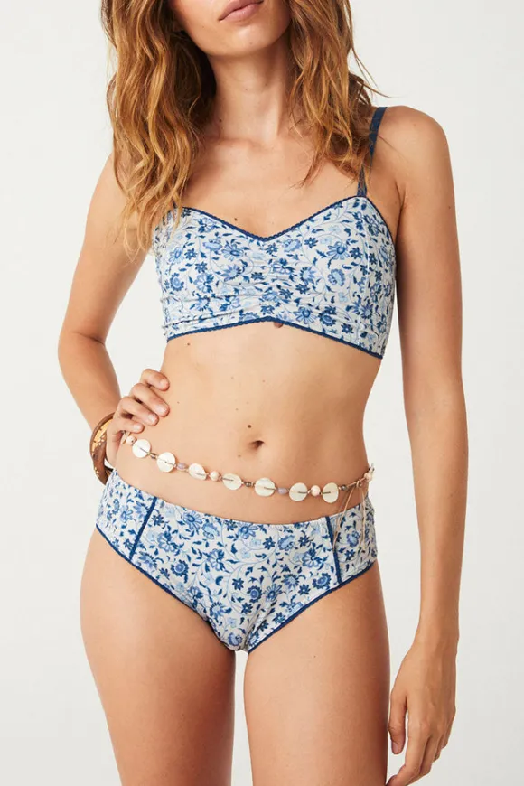 Our Sunshine Bandit Brief in Chambray is a vintage inspired high waisted style featuring our signature floral all over print. A flattering fit, our newest brief is designed to inspire confidence. We recommend pairing these with the matching Sunshine Bandit Bralette for a peekaboo moment or to add a little coverage when wearing all styles from our Sunshine Bandit story.